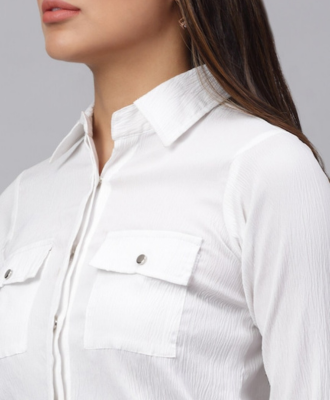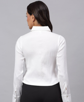 Introducing the perfect fusion of timeless elegance and contemporary design: our Women’s Classic Self Design Formal Shirt. This piece reimagines professional attire with its subtle self-design, blending seamlessly into a wardrobe that values sophistication and subtlety.Women’s Classic Self Design Formal Shirt